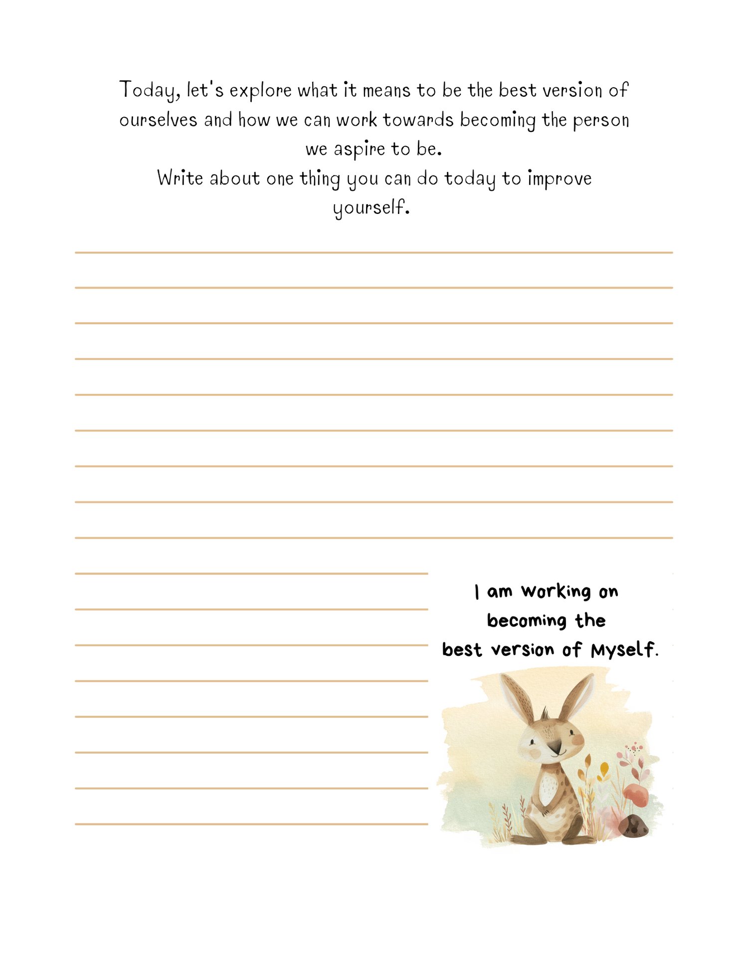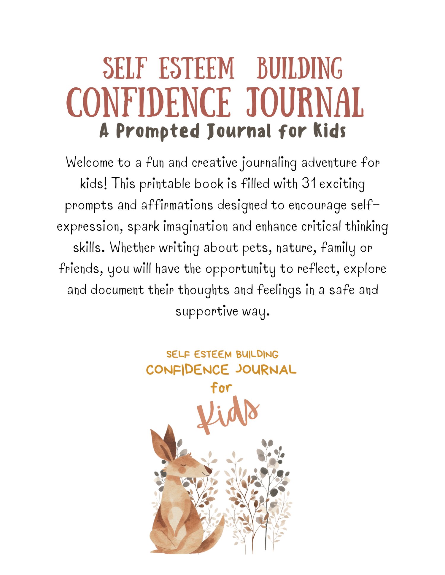 Embark on a captivating journey with the SELF ESTEEM BUILDING Confidence Journal for Kids! Designed for introspective young minds, this is a treasure trove of affirmations coupled with writing and drawing prompts waiting to unfold . Each of the 31 prompted journal pages is a step towards self-discovery, filled with thought-provoking prompts to guide your youngster through a sea of emotions and newfound confidence, designed to instill positivity and self-belief. These prompted activities are little whispers of encouragement, perfect for starting each day with a positive mindset. Easily printable , they are your child’s daily companions on this journey of self-discovery.
