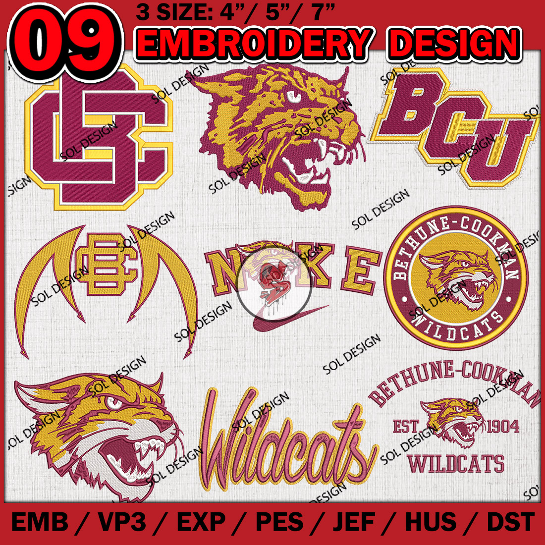 9 Bethune Cookman Wildcats Bundle Embroidery Files, College Football Embroidery Designs, NCAA Bethune Cookman Wildcats Machine embroidery Design Bundle, Ncaa Bethune Cookman Logo bundle, Digital Download