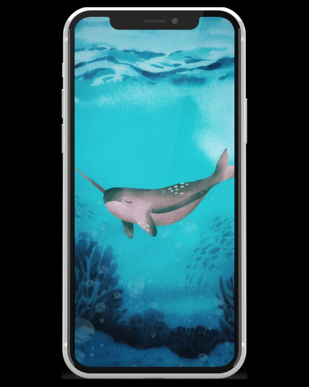 Cute Narwhal Underwater Phone Background