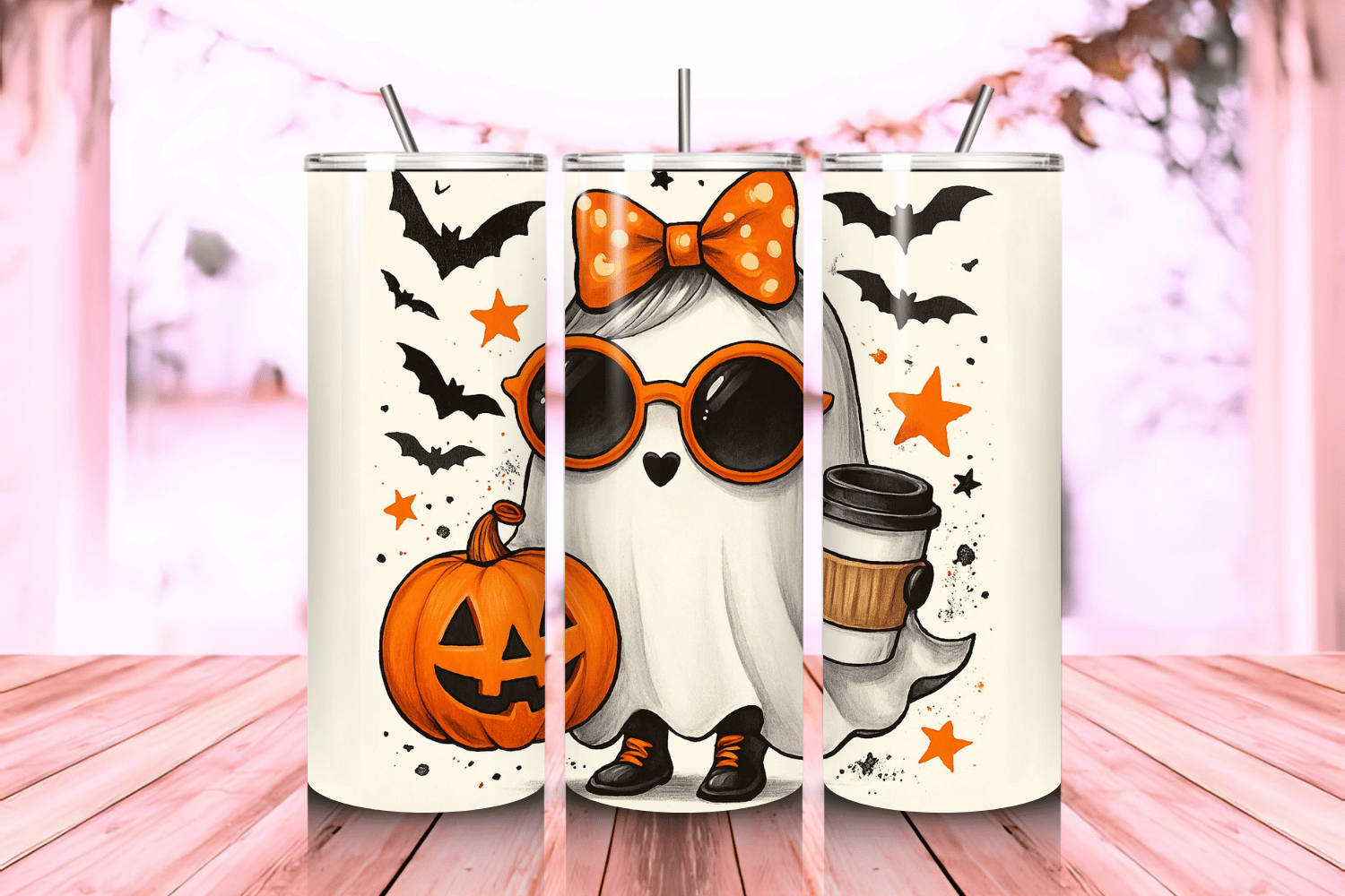 ☕👻🎃 Embrace the cozy side of spooky season with the Trendy Ghost with Pumpkin and Coffee Tumbler Wrap—a fun, heartwarming design that’s perfect for autumn.