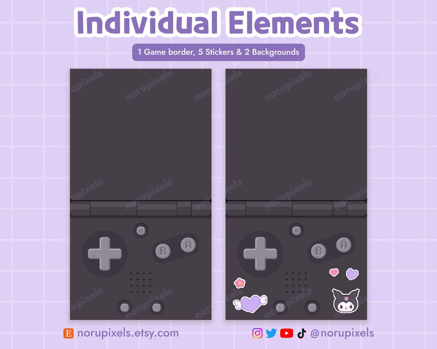 - Individual elements from overlay: 1 game border, 5 stickers & 2 backgrounds (.PNG format)