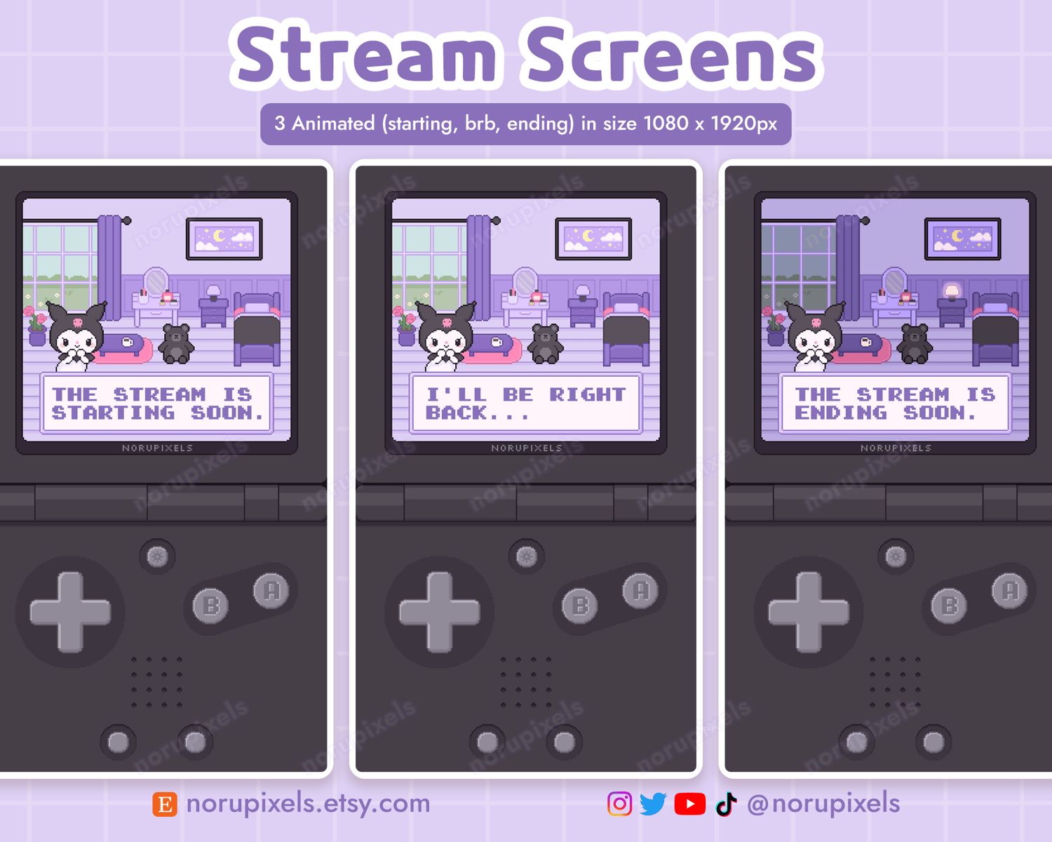 - 3 animated stream screens (starting, be right back, ending), each in .MP4 format (size 1080 x 1920px)