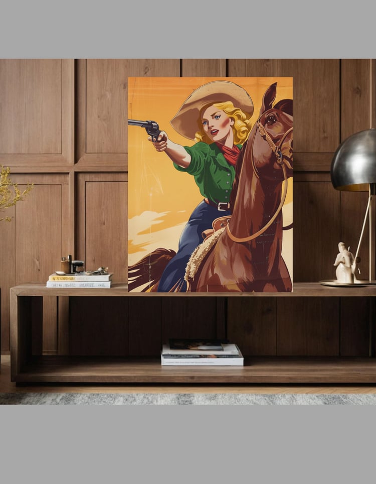 Cowgirl Riding Dinosaur Digital Art Print - Western Fantasy PNG Download for Wall Decor