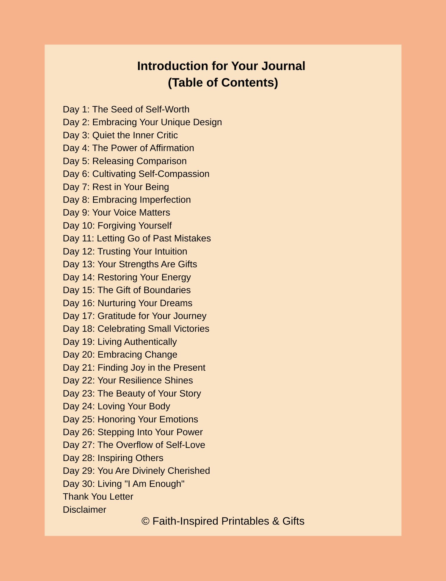 This 30-day guided journal was created for the soul who needs a gentle reminder of their God-given worth. "I Am Enough" invites you on a powerful journey of healing, self-acceptance, and spiritual renewalโone day at a time.