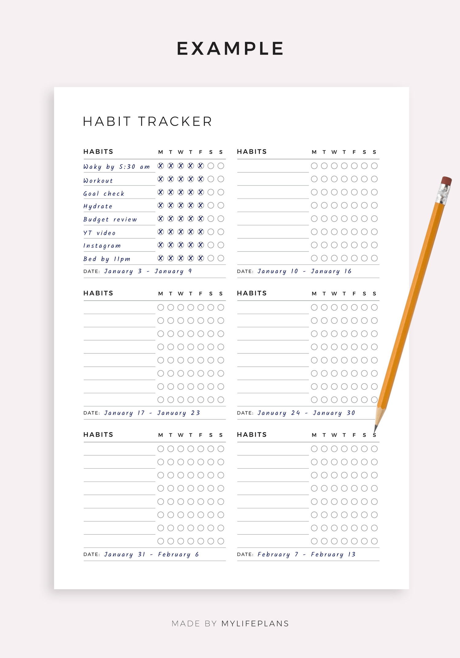 This is a printable weekly habit tracker — just download, print, and start using it right away.