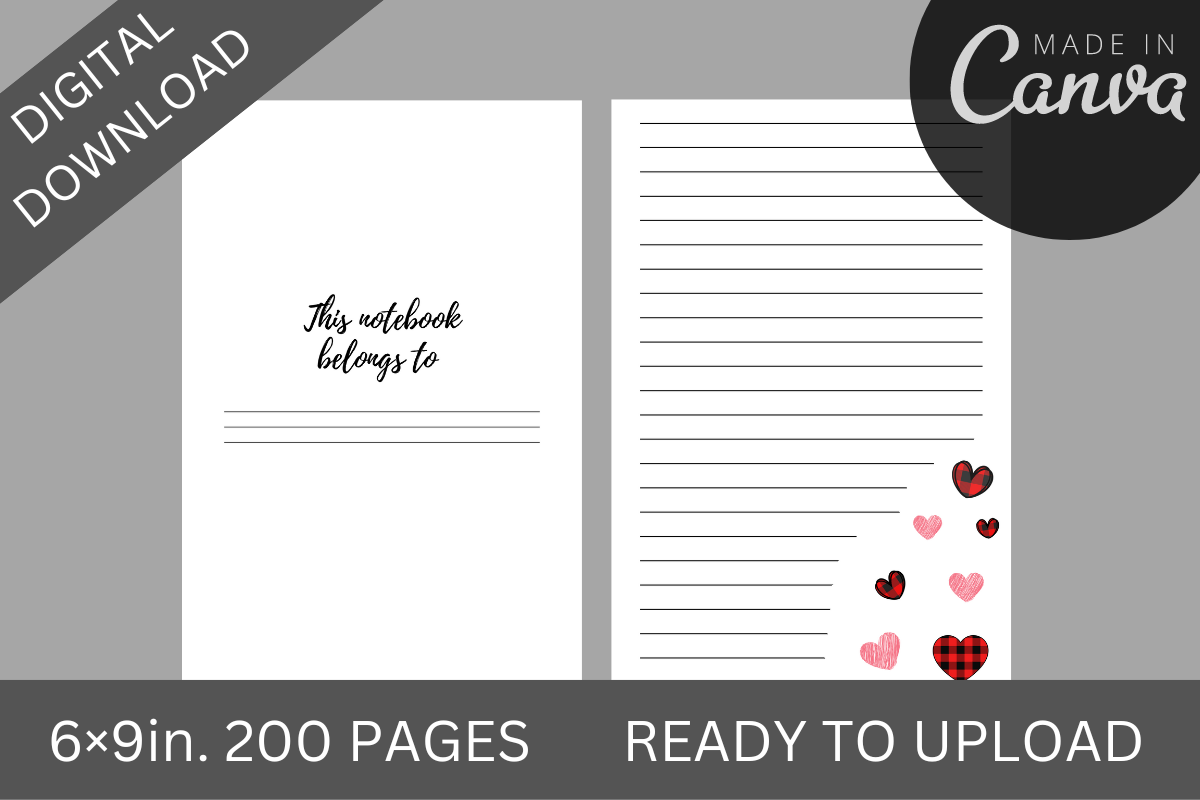 LOVE THEMED KDP LINED PAPER INTERIOR+ COVER, LOW CONTENT BOOK, KDP READY UPLOAD, KDP JOURNAL PAPER, JOURNAL NOTEBOOK MOCKUPS, KDP CANVA NOTE