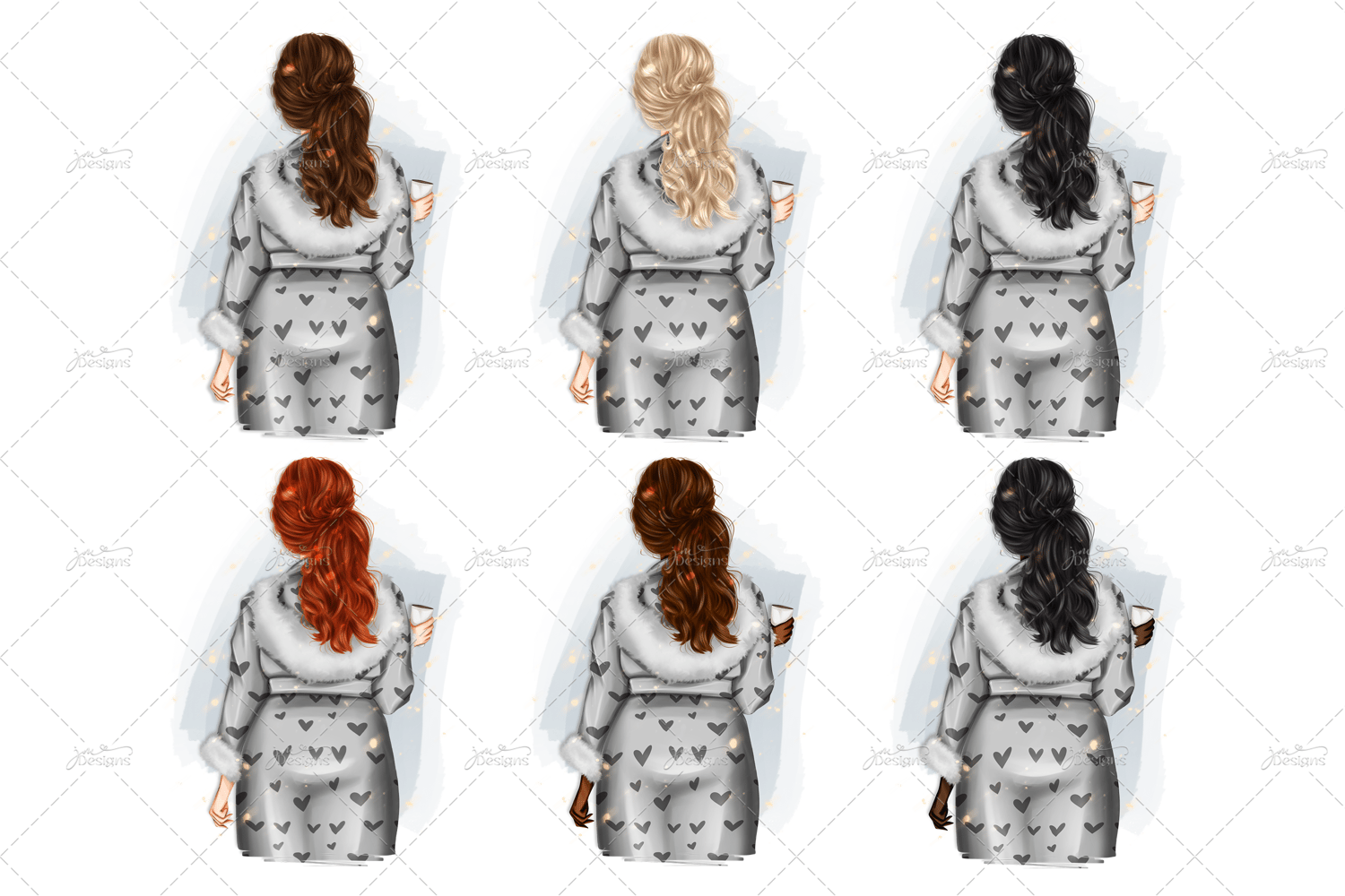 6 variations of cosy housecoat girls perfect for all kinds of sublimation projects such as mugs, coasters, bottles, makeup bags, t-shirts and more!