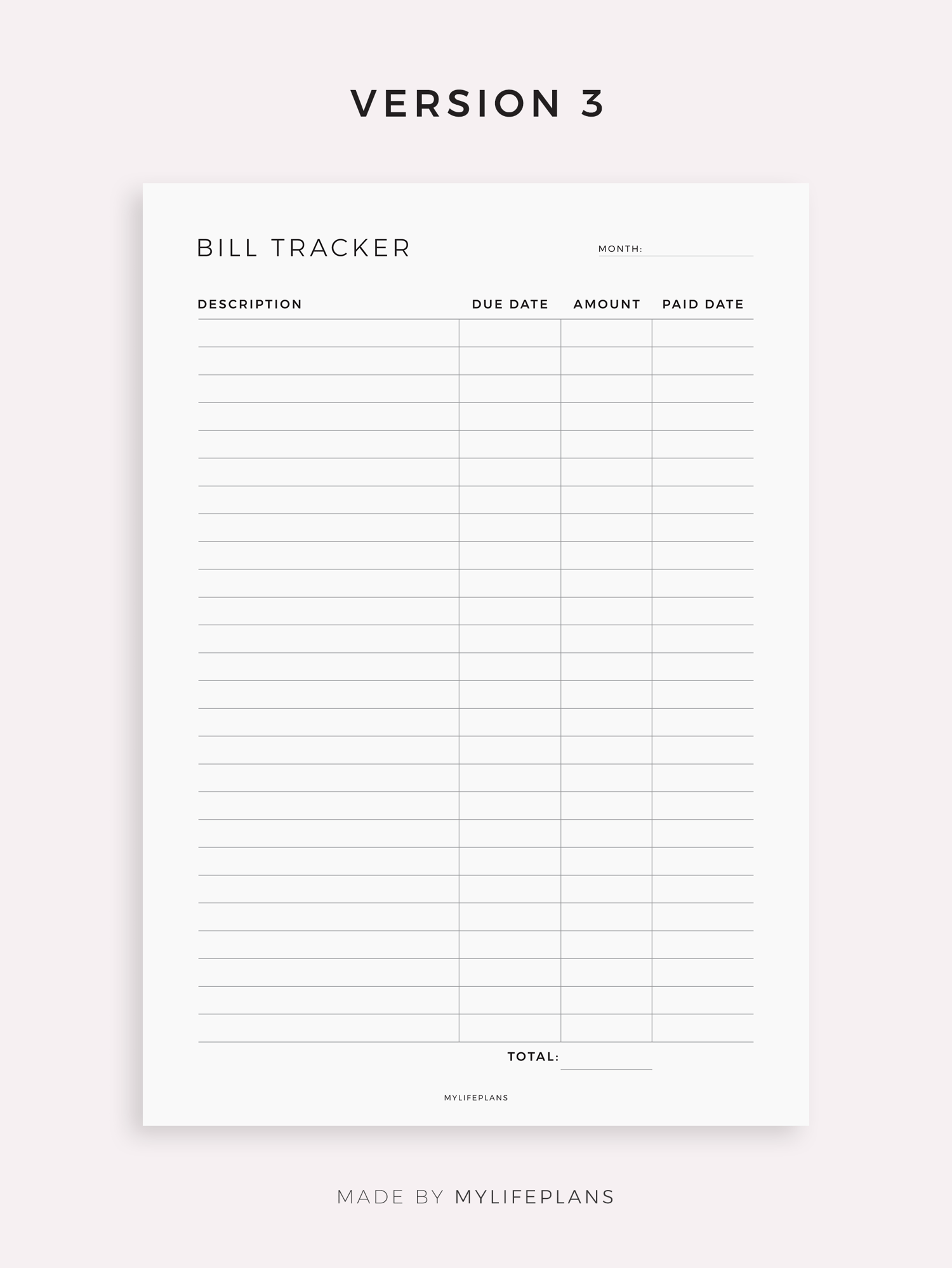 Monthly Bill Tracker Template for Remarkable, Supernote, Kindle Scribe, Boox, Kobo