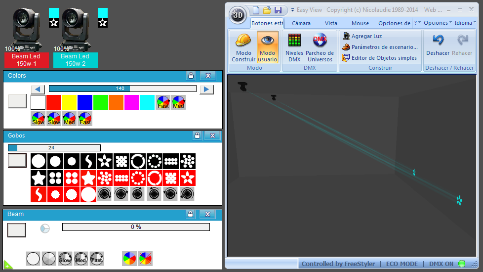 Esta Librería SSL2 está optimizada para trabajar con Magic 3d Easy View. Es decir para ver una representación 3D de las secuencias que estemos realizando con Freestyler, QLC+ o cualquier otro soft que se conecte con Magic 3d.