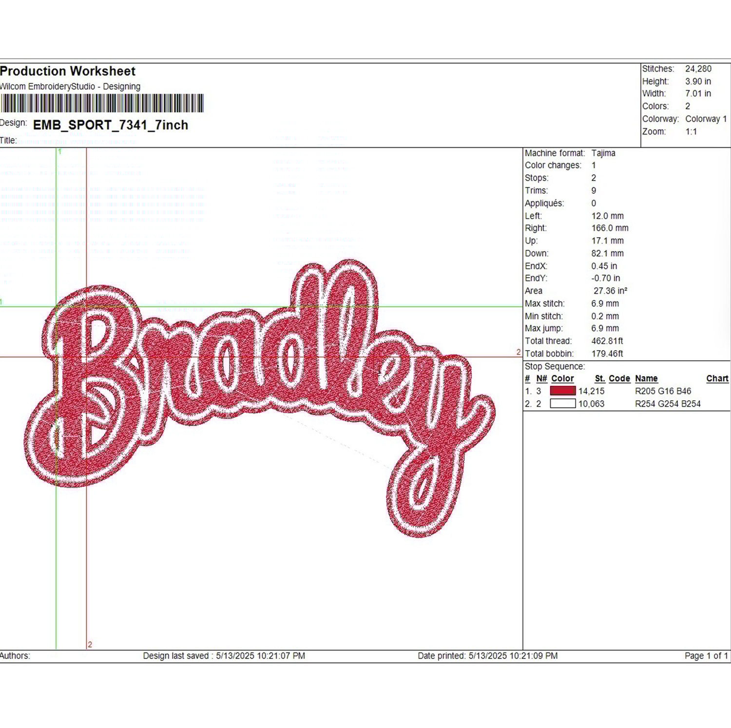 NCAA Bradley Football Team Word Logo Embroidery Designs, NCAA Bradley Braves Machine Embroidery Files, NCAA Logo embroidery designs, Ncaa Bradley Logo, Digital Download