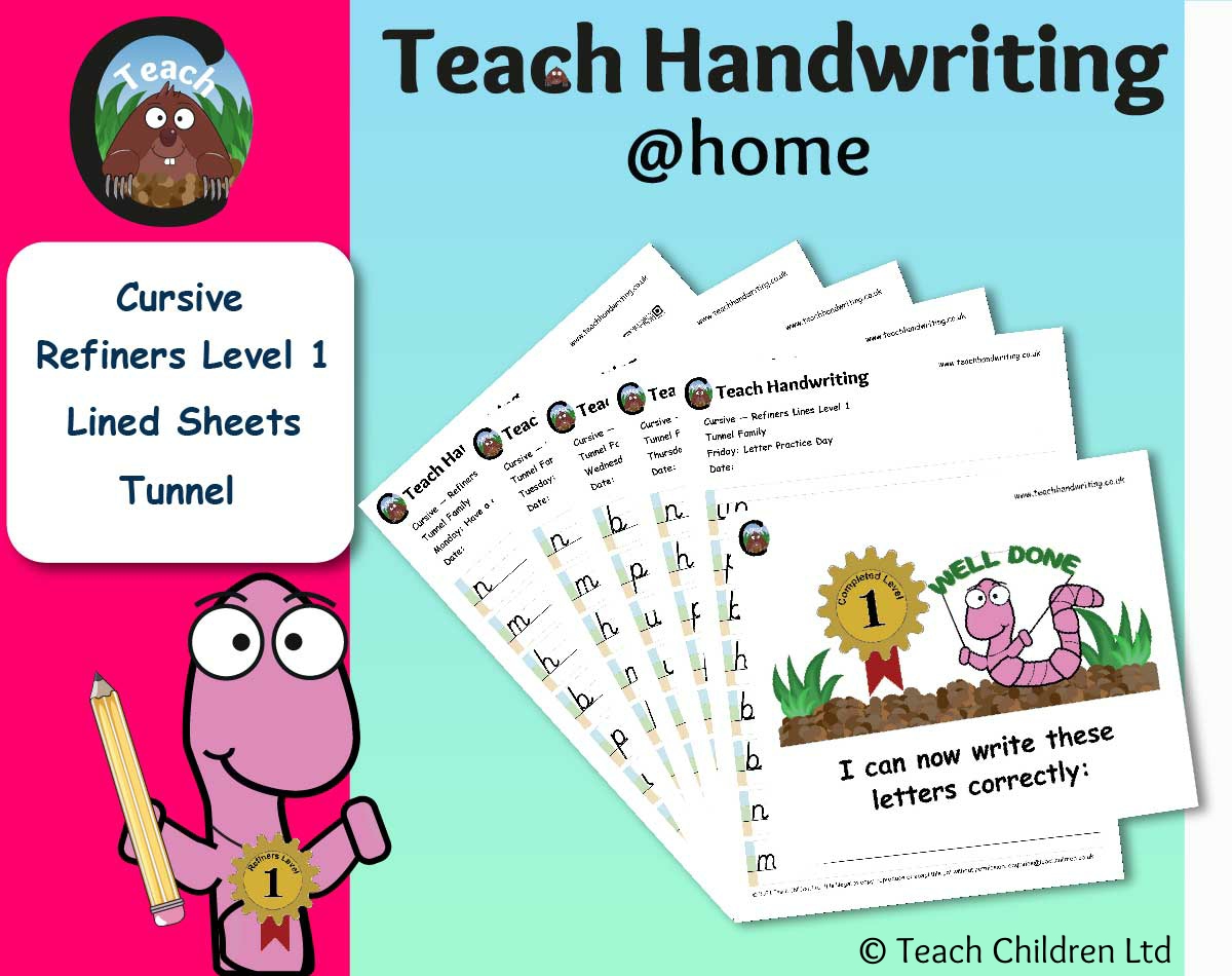 Cursive Lined Level 1 – Tunnel family: n m h b p u