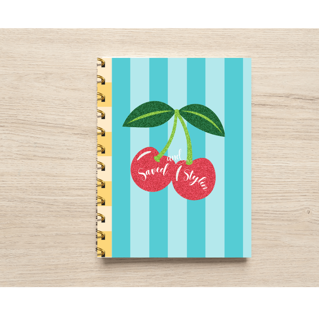 Add some sparkle to your faith and your desk with the “Saved and Stylin’” notebook! Featuring a bold cherry glitter design on a teal-striped background, this notebook is perfect for the believer who loves Jesus and fashion. The chic and playful design reminds you that you can be both holy and stylish—because being saved never goes out of style.