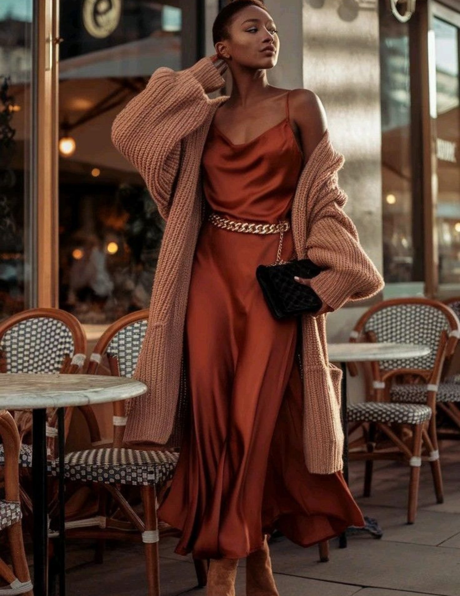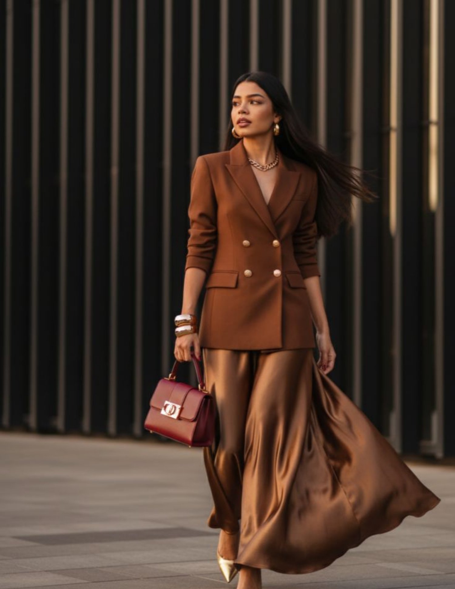 Cinnamon & Cocoa is ideal for building polished, monochromatic outfits and soft neutral pairings. These tones shine in knitwear, satin skirts, tailored trousers, handbags, and outerwear, perfect for capsule wardrobes, seasonal styling, and editorial content.