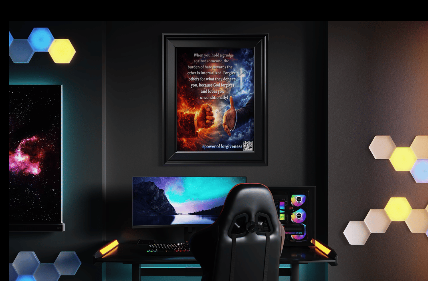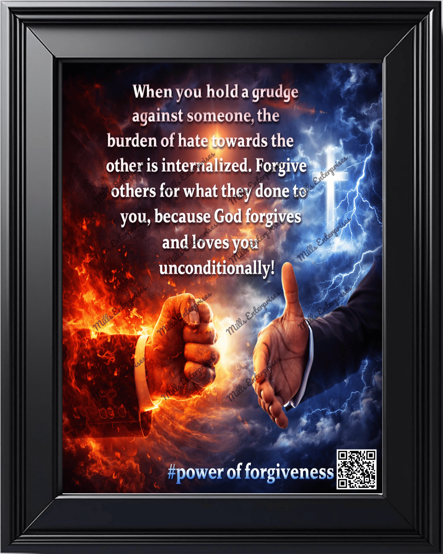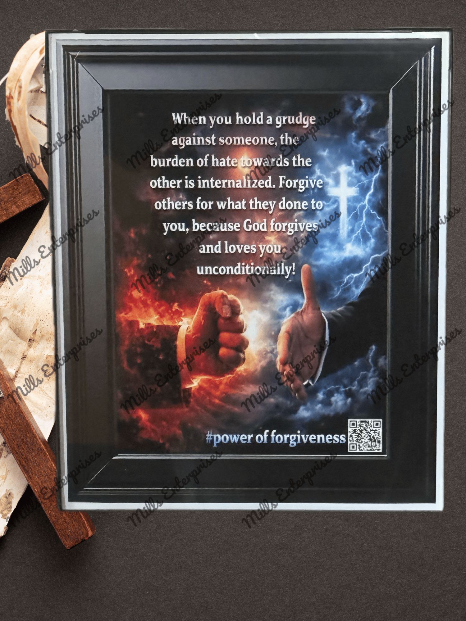 Experience the power of forgiveness through this striking, faith-filled artwork that speaks directly to the heart. This piece visually captures the spiritual battle between holding onto anger and choosing grace—reminding us that forgiveness is not weakness, but obedience and freedom.Before you seek revenge against your enemies seek peace with them. If your revenge scheme doesn't play out the way you wanted it to go, you still will feel the pain, because you didn't get even. You will hurt your heart, soul, and self-confidence, if you choose revenge over choosing to forgive. The way you get even is to kill them with kindness, and mercy. Let's keep it real there are plenty of snake people who do dirty things, but if you hate them you will only be damaging yourself. The high road is always saying to yourself what would Jesus do in any situation and do what you think he would do.The Bible tells us, “Be kind and compassionate to one another, forgiving each other, just as in Christ God forgave you” (Ephesians 4:32). When we release unforgiveness, we release the burden that weighs down our spirit. Jesus Himself taught, “If you forgive others their trespasses, your heavenly Father will also forgive you” (Matthew 6:14).This artwork serves as a daily reminder that forgiveness brings healing, restores peace, and reflects the unconditional love of God. Perfect for your home, prayer room, office, or as a meaningful gift for someone seeking spiritual renewal.Let this powerful visual declaration inspire grace, reconciliation, and faith every time you see it.