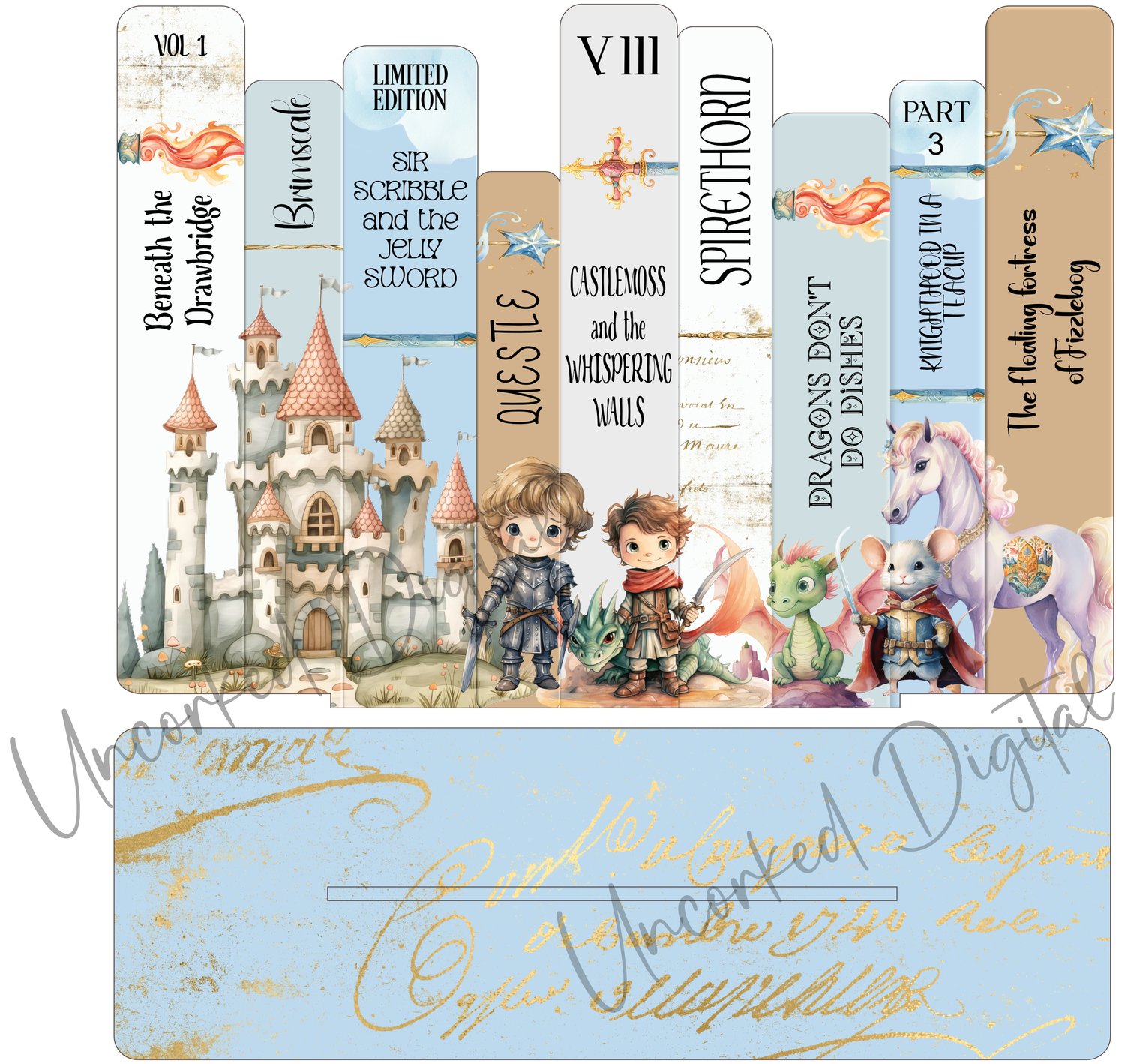 Set of freestanding bookshelf fairytale designs with a princess and knight theme to fit the blanks from Woodform Crafts - Product - WC2175