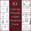 10 Printable Coloring Folded Christmas Cards - Christmas greeting cards for childs, hollidays card, print xmas coloring cards