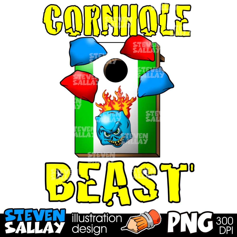 Bean Bag Toss Cartoon Clipart – Cornhole Beast Logo Illustration PNG