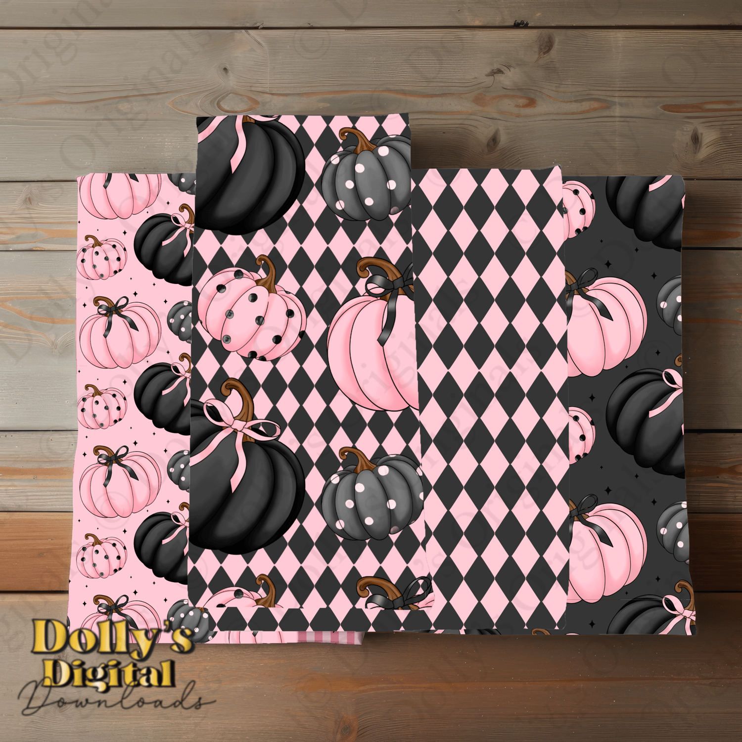 Includes the Four Rose Pink and Black Pumpkin Seamless Patterns PNG tiles (4 PNG’s)