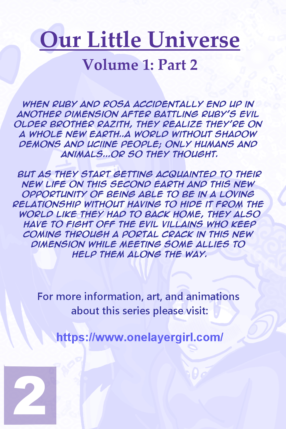 That's when OLU was born! It took a lot of thinking to come up with the title but after going through many different variations, "Our Little Universe" just seemed like the perfect match because essentially it is a story centered around Ruby and Rosa's lives and relationship.