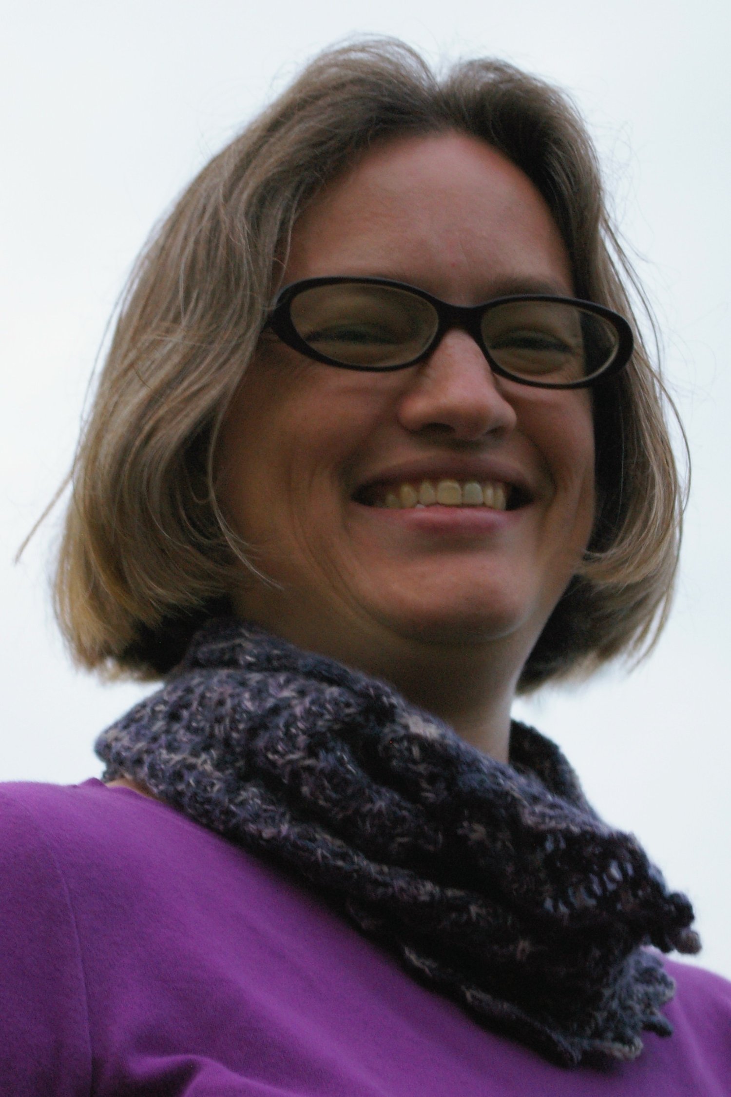 A large number of stitches are initially cast on, but 60% are bound off on the next row, resulting in a looped edge. The simple lace body allows the mottling pattern of the Malabrigo Lace (held doubled) to shine. Loops are also created at the bind off by adding back the stitches that had been removed at the beginning.