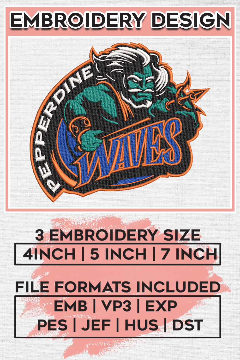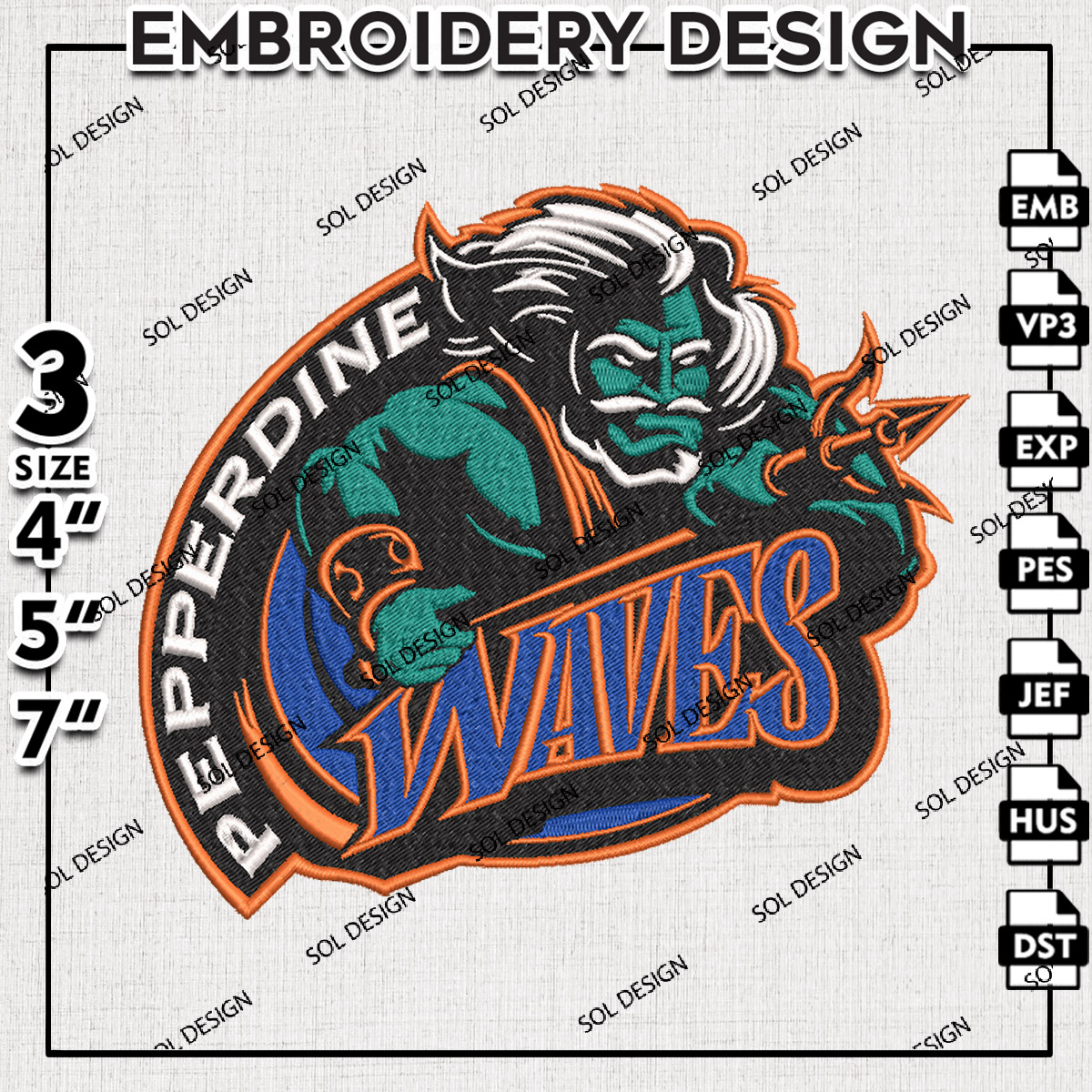 Pepperdine Waves Machine Embroidery Designs, NCAA Pepperdine Waves Machine Embroidery Designs, NCAA Logo embroidery designs, Ncaa Waves Logo, Digital Download