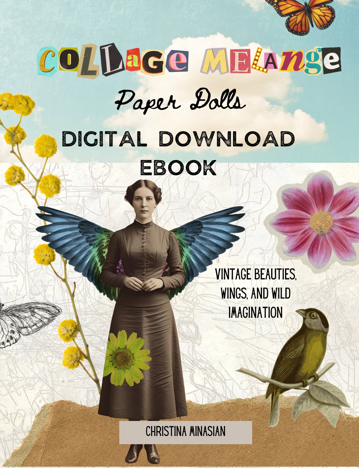 Step into a world of whimsy, imagination, and creative storytelling with Collage Melange Paper Dolls, a carefully curated digital collection of high quality imagery designed for collage artists, mixed media creators, journalers, and anyone who loves working with vintage inspired figures and decorative elements. This downloadable ebook is filled with beautifully arranged images of women, butterflies, wings, florals, and patterned backgrounds, perfect for creating expressive characters, layered scenes, and imaginative visual stories.