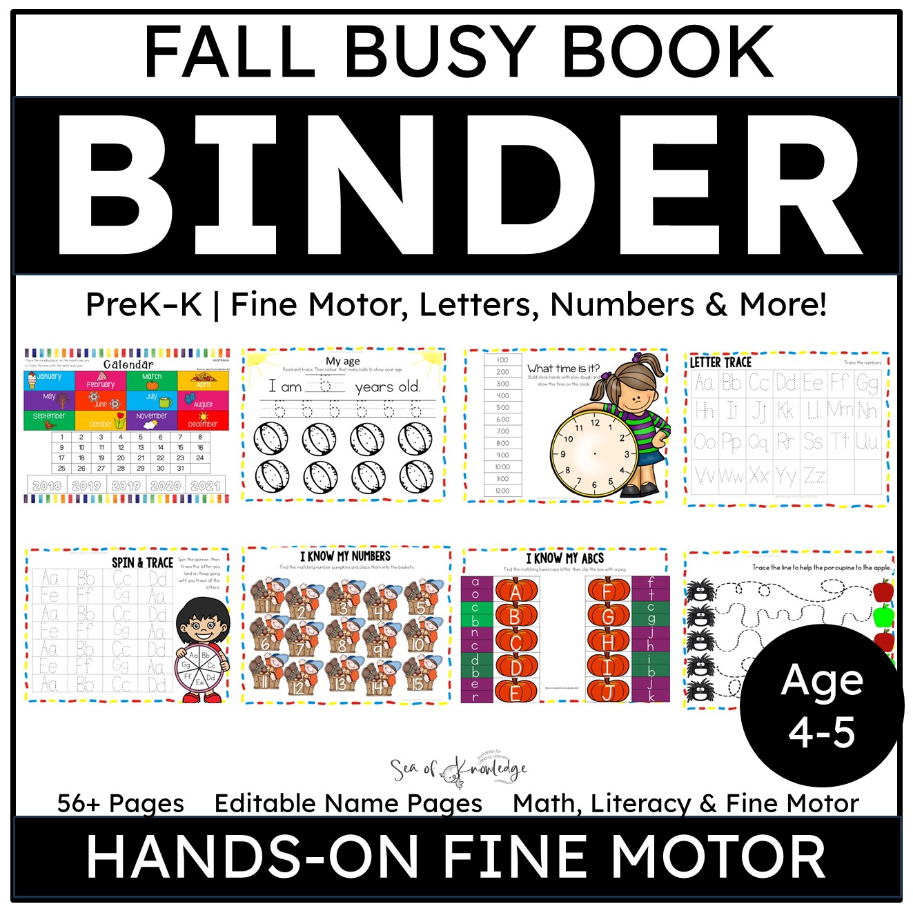 Editable Fall Busy Book | Back to School Learning Binder Age 4–5 | Autumn