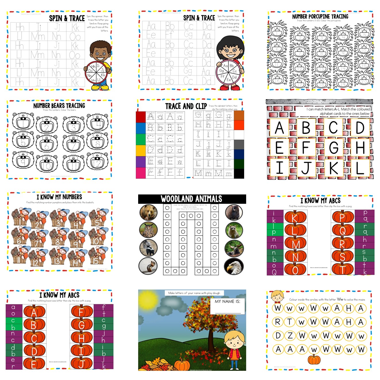 - Tracing lines with acorns, pumpkins, and fall paths