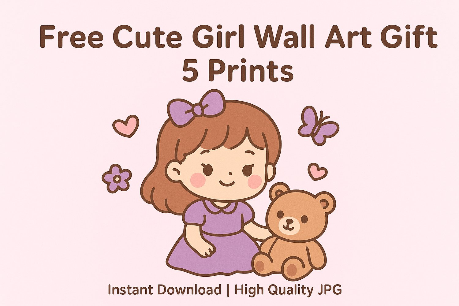 🎁 Free Cute Girl Wall Art Set – 5 Adorable Kawaii Prints for Girls Room
