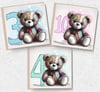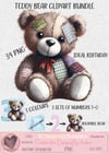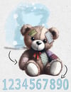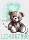 Adorable patch teddy bear bundle. 34 PNGs, 3 colours. 3 Backgrounds, numbers 1-0 in pink, blue and green, gorgeous patch bear