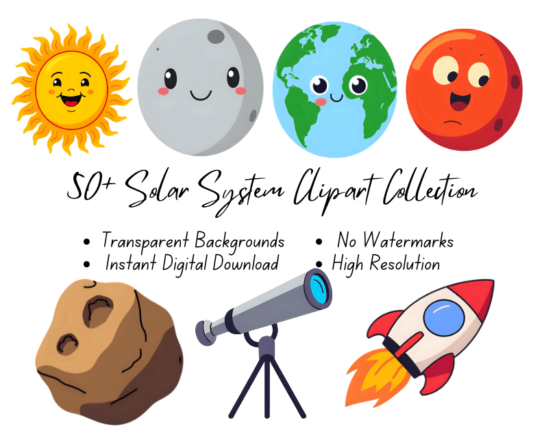 50+ Solar System Clipart Collection | High-Resolution | Instant Digital Download | No Watermark
