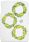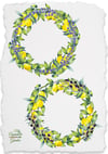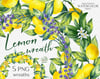 Lemon wreaths with green leaves, olives, white and blue flowers