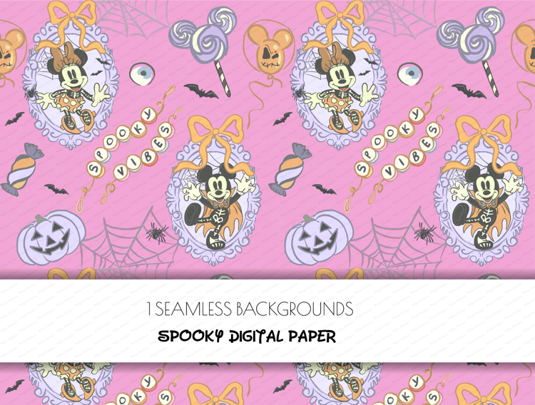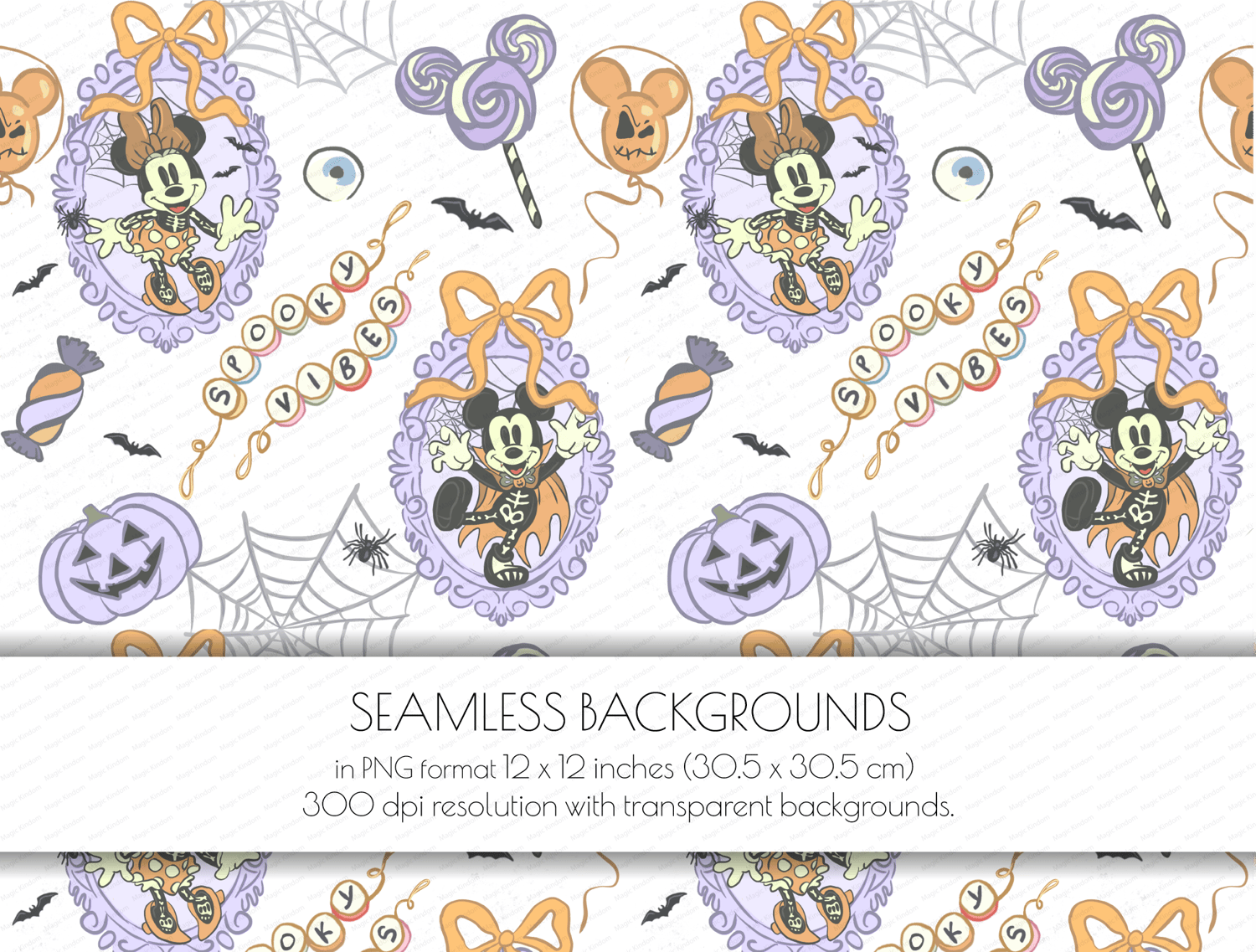 1 Spooky mickey, nightmare on main street Seamlessbackground PNG format 12 x 12 inches (30.5 x 30.5 cm) 300 dpi resolution .