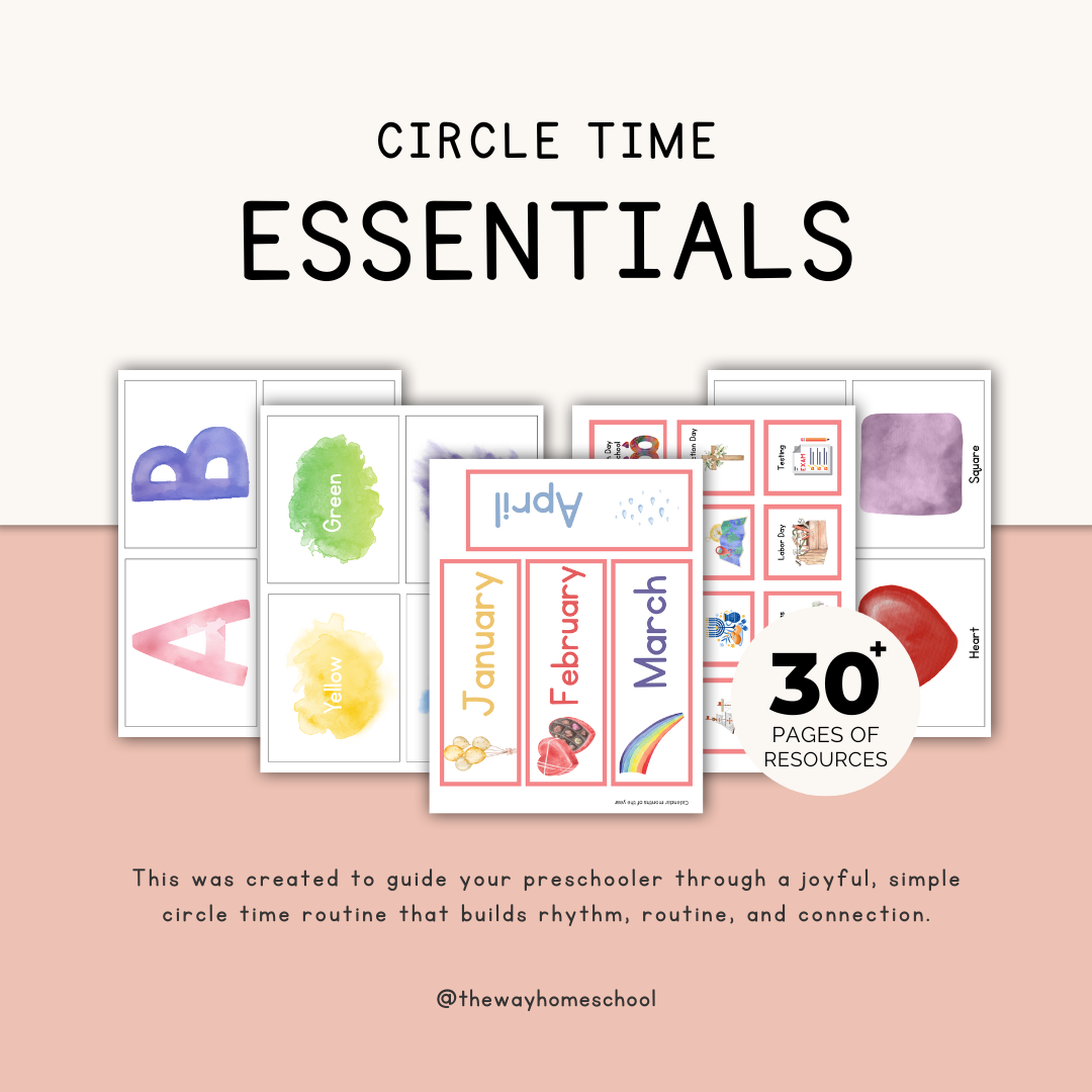 This was created to guide your preschooler through a joyful, simple circle time routine that builds rhythm, routine, and connection—right from your kitchen table, living room, or homeschool corner.