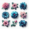 fleurs roses et bleues