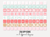 • Icons are made with the 'Shortcuts' app on your device. It is a default app on iOS devices. Please note that each icon shortcut has to be created one by one which can be time-consuming if you have a lot of apps on your Home Screen. The icon set includes a user guide to the Shortcuts app.