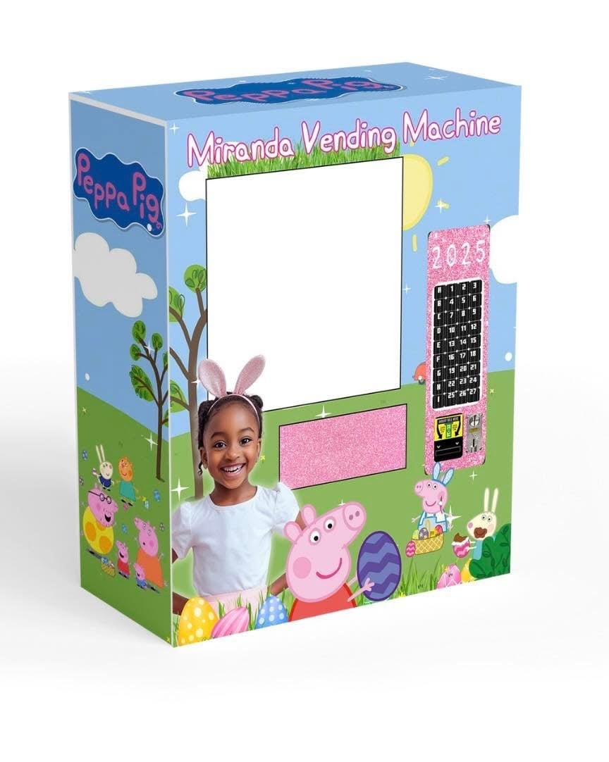 Each template features a playful vending machine layout with a photo placeholder where you can easily add your child’s picture to make it unique.