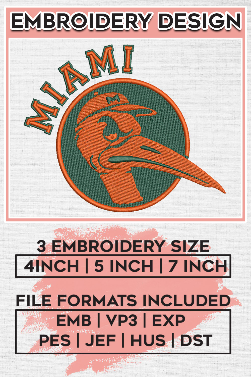 Miami Hurricanes Team Mascot Logo Embroidery Designs, NCAA Miami Hurricanes Machine Embroidery Files, NCAA Logo embroidery designs, Ncaa Hurricanes Logo, Digital Download
