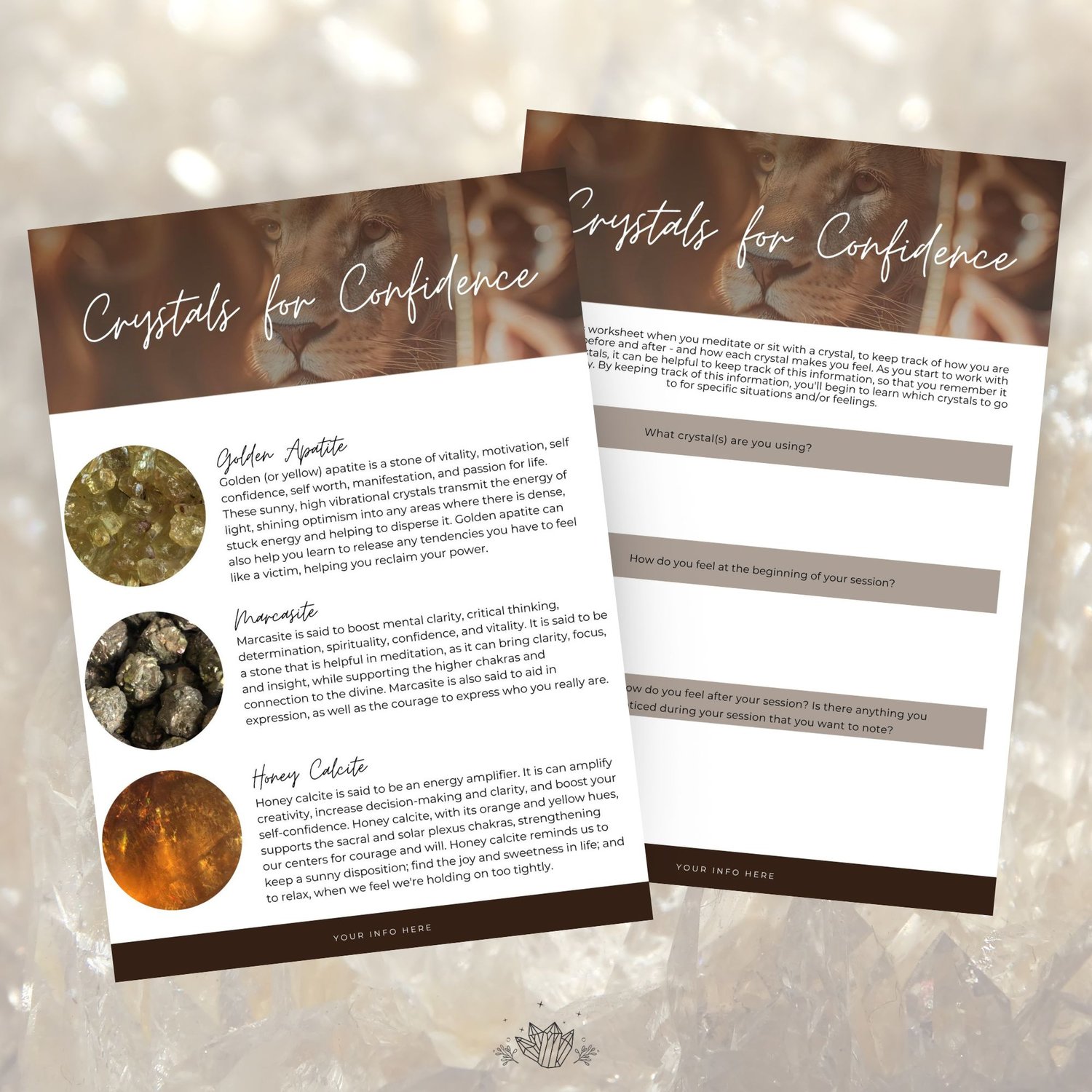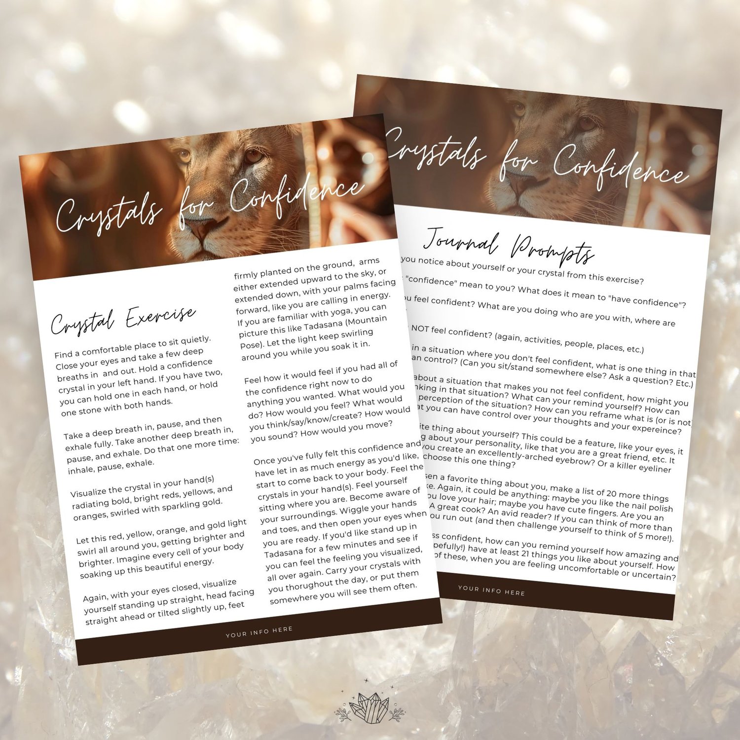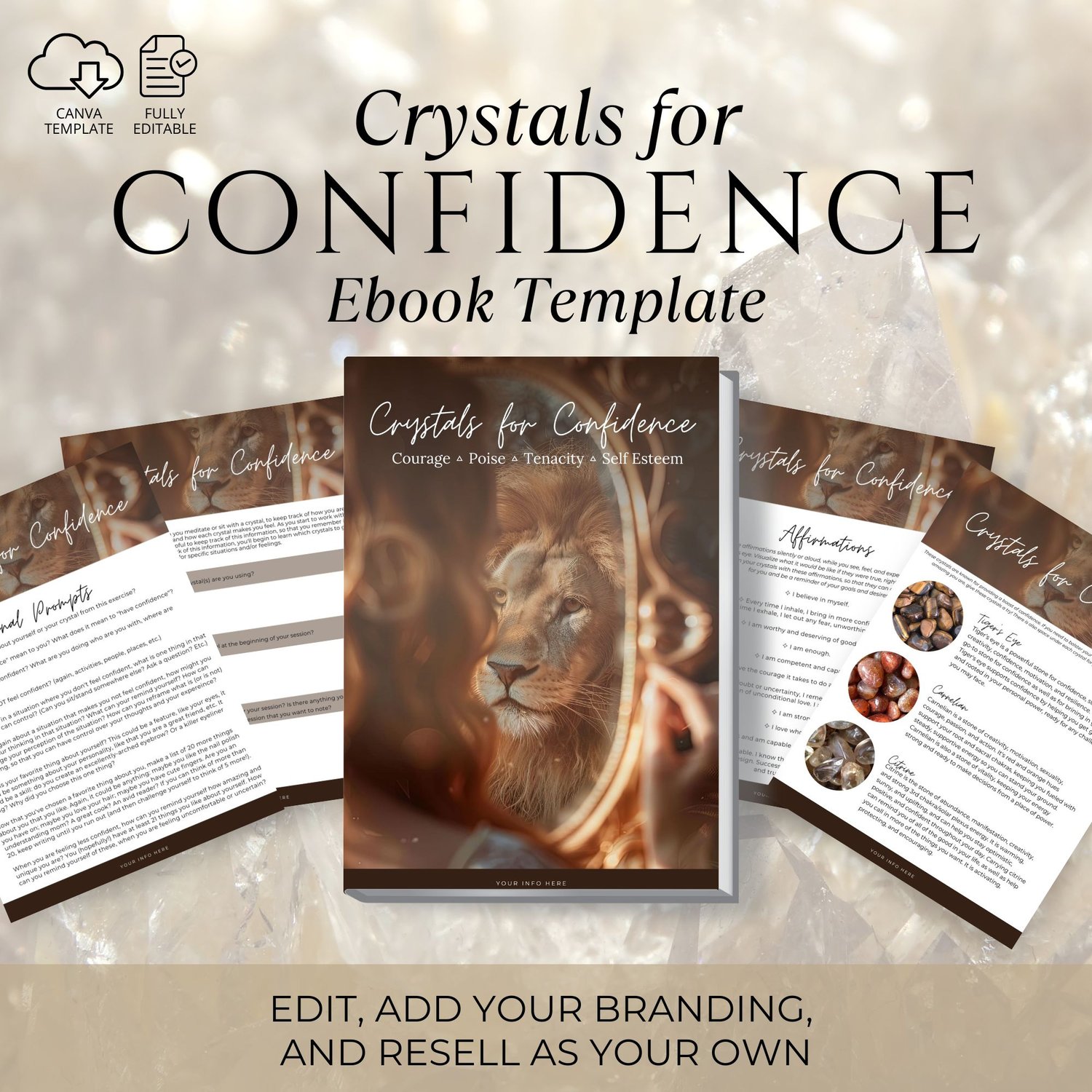 🦁 Use it as freebie, paid e-book, or to create a masterclass or workshop on crystals for confidence