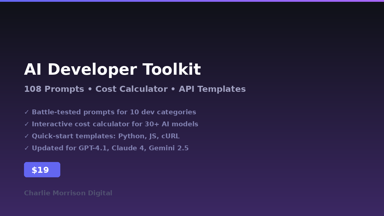 AI Developer Toolkit — 108 Prompts, Cost Calculator & API Templates