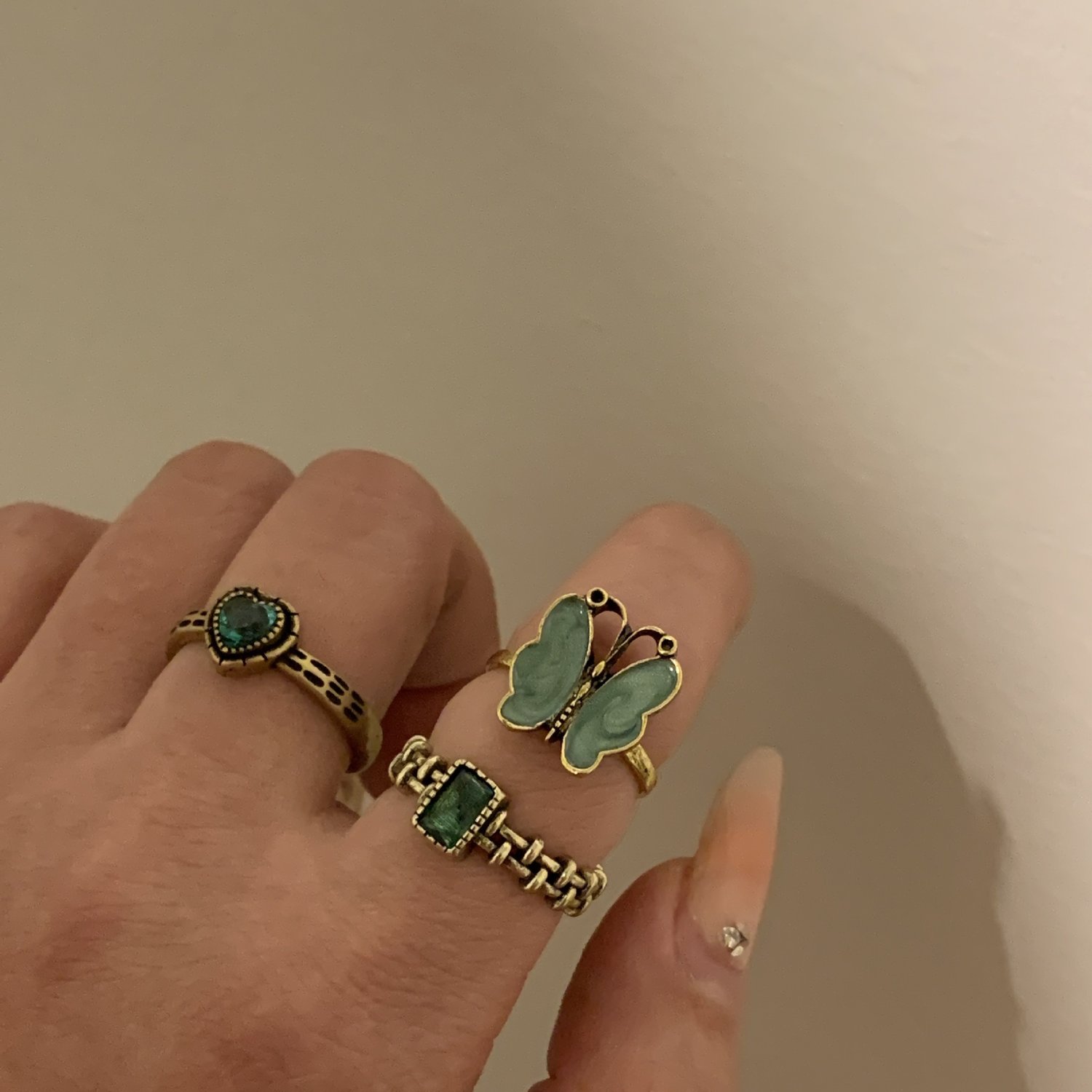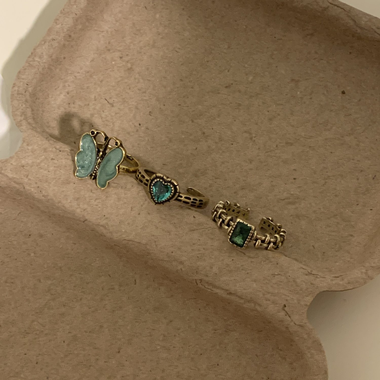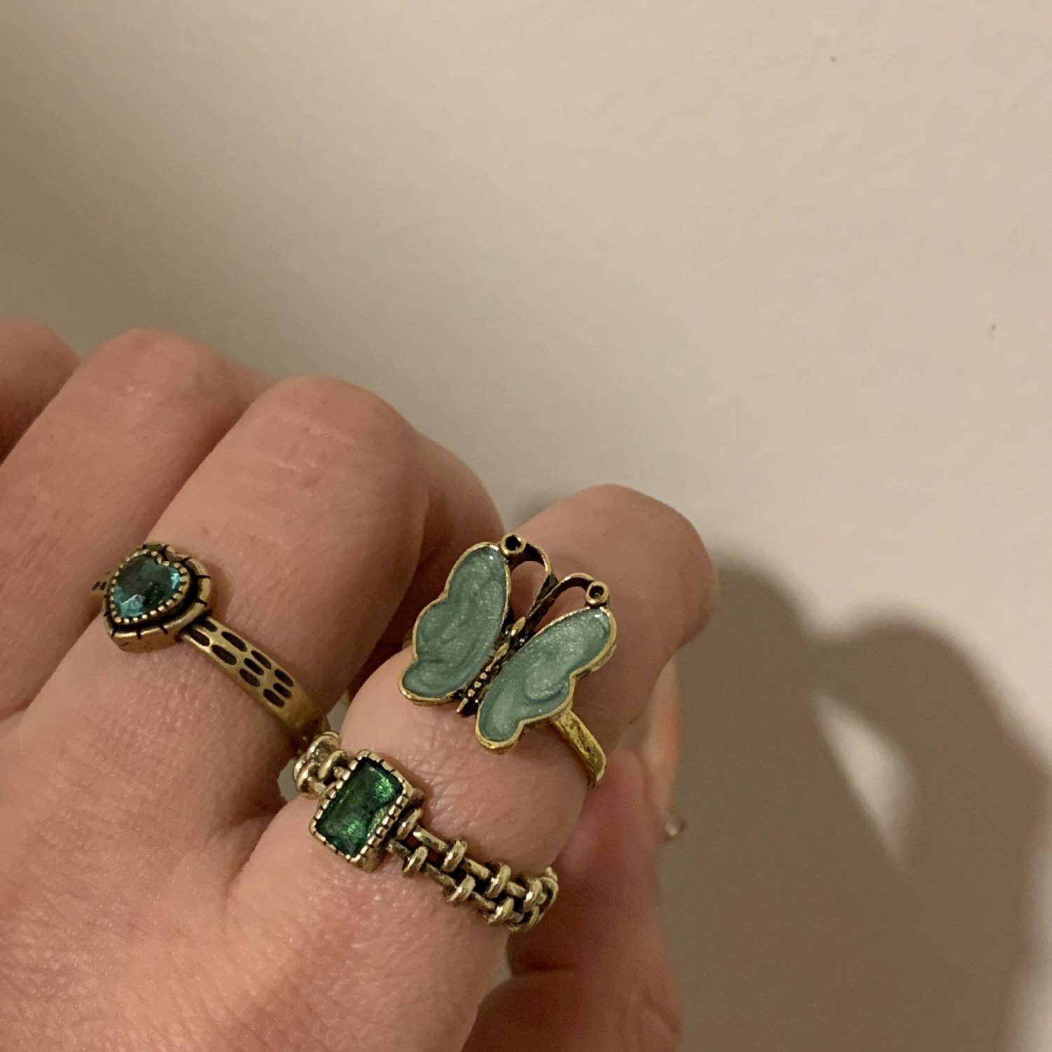 Vintage style distressed butterfly green stacking ring