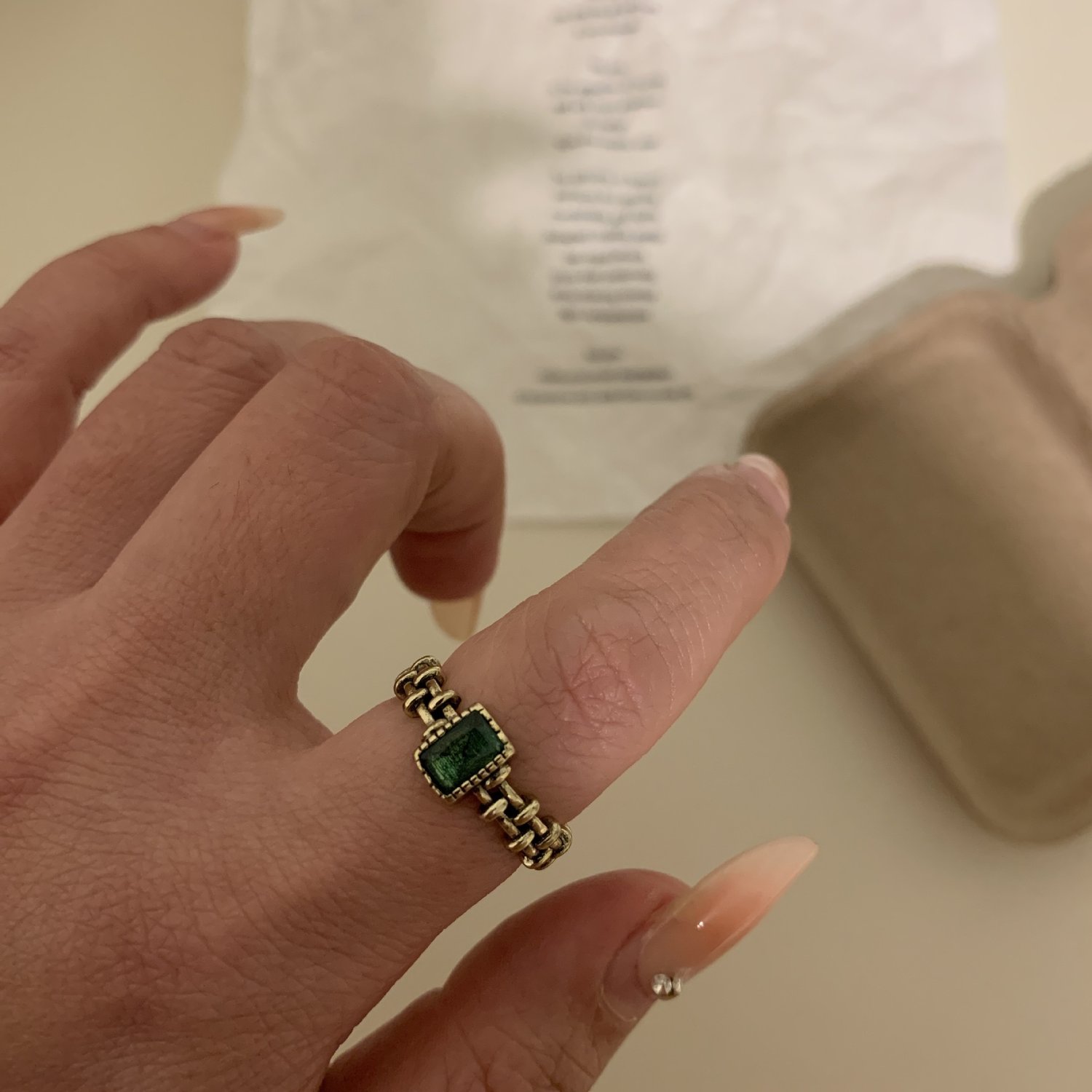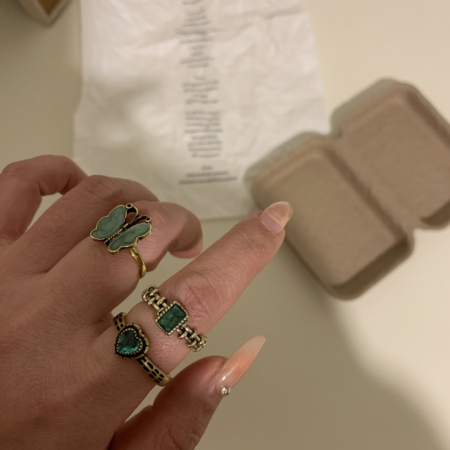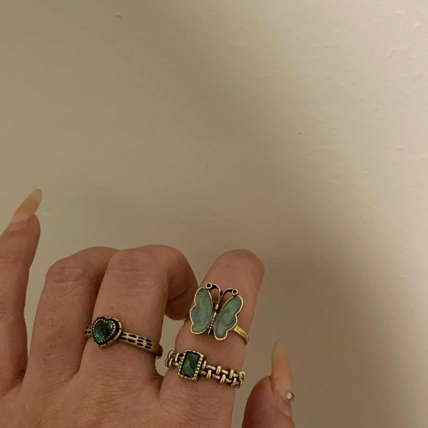 Vintage style distressed butterfly green stacking ring