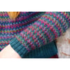 The mazurka is a popular European folk dance in 3-time with a playful, offbeat groove. When I made the Mazurka jumper, I worked repeating bands of 3 colours with slip-stitch cables to add interest and interrupt the rhythm. It’s not hard to see why it made me think of the dance!