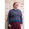 This adult sized jumper is designed to be worn with a relaxed fit. Choose a size with 5-10 cm / 2-4″ positive ease on the chest. All measurements provided are from the finished garment. I am wearing size 7 with bust shaping option B.