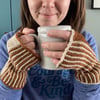 SPLIT DECISION MITTS use DK weight yarn with modular construction to create unique and useful fingerless mitts. These mitts use multi-directional garter stitch to create a fun and functional fabric. This pattern is available in 4 sizes and coordinates wonderfully with my Split Decision Hat!