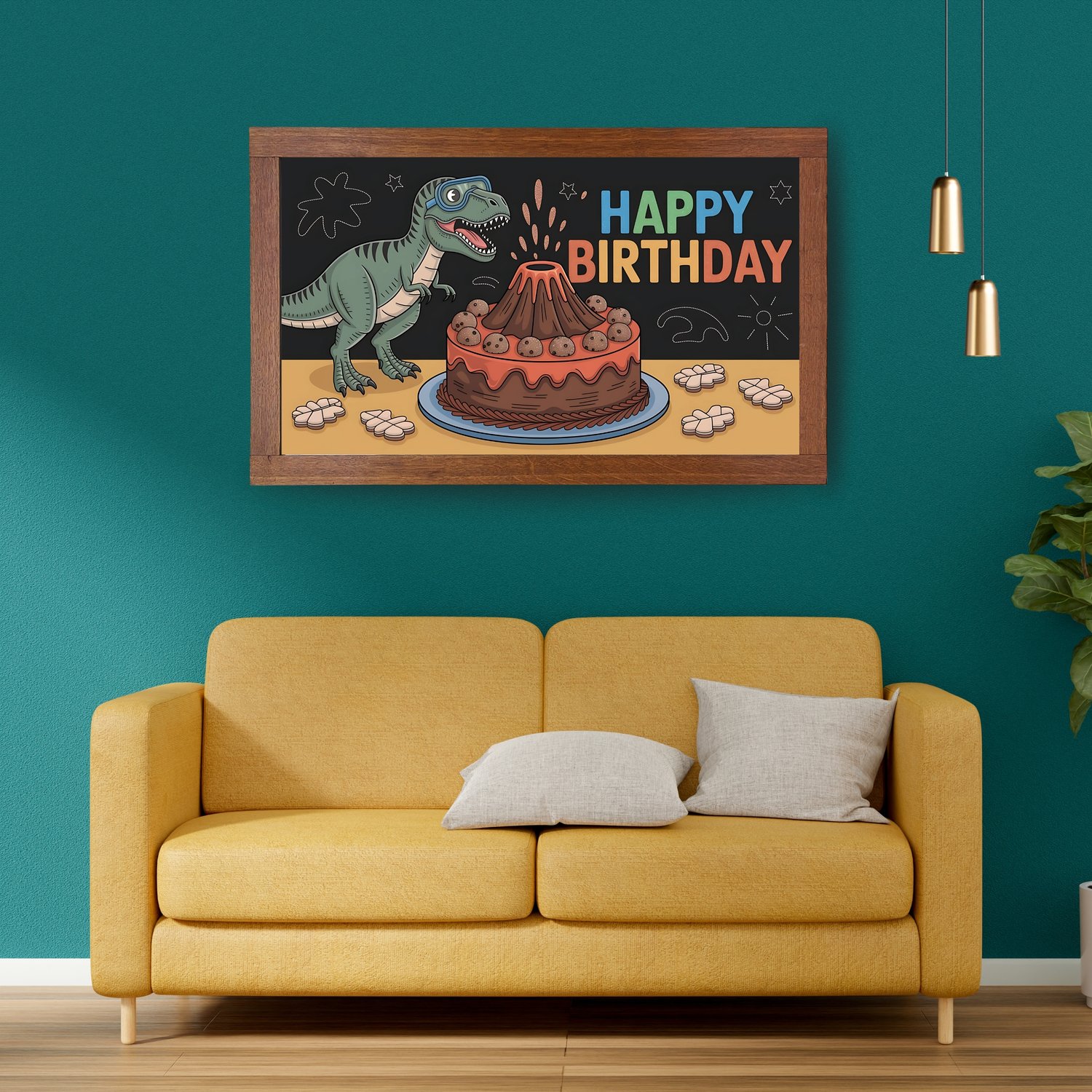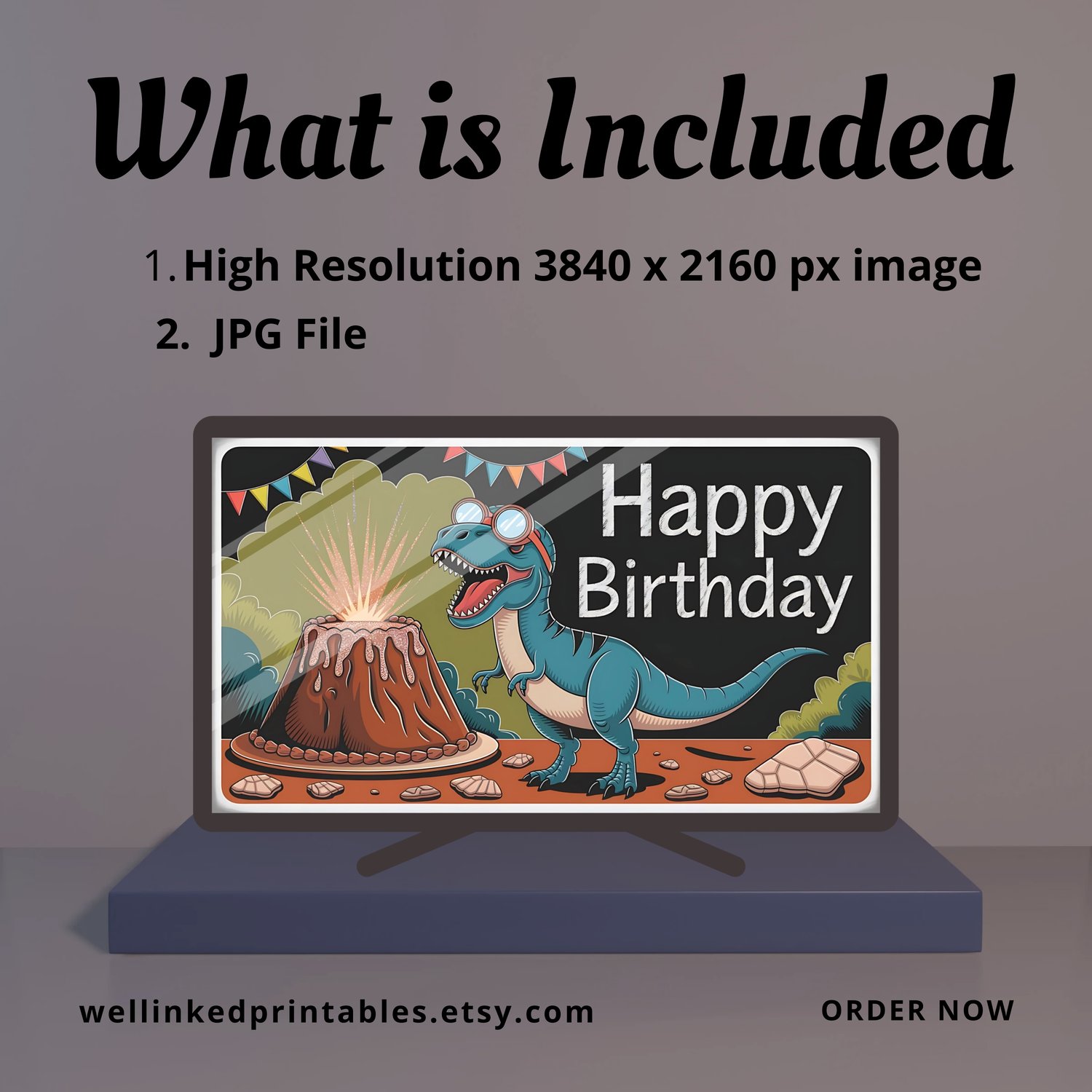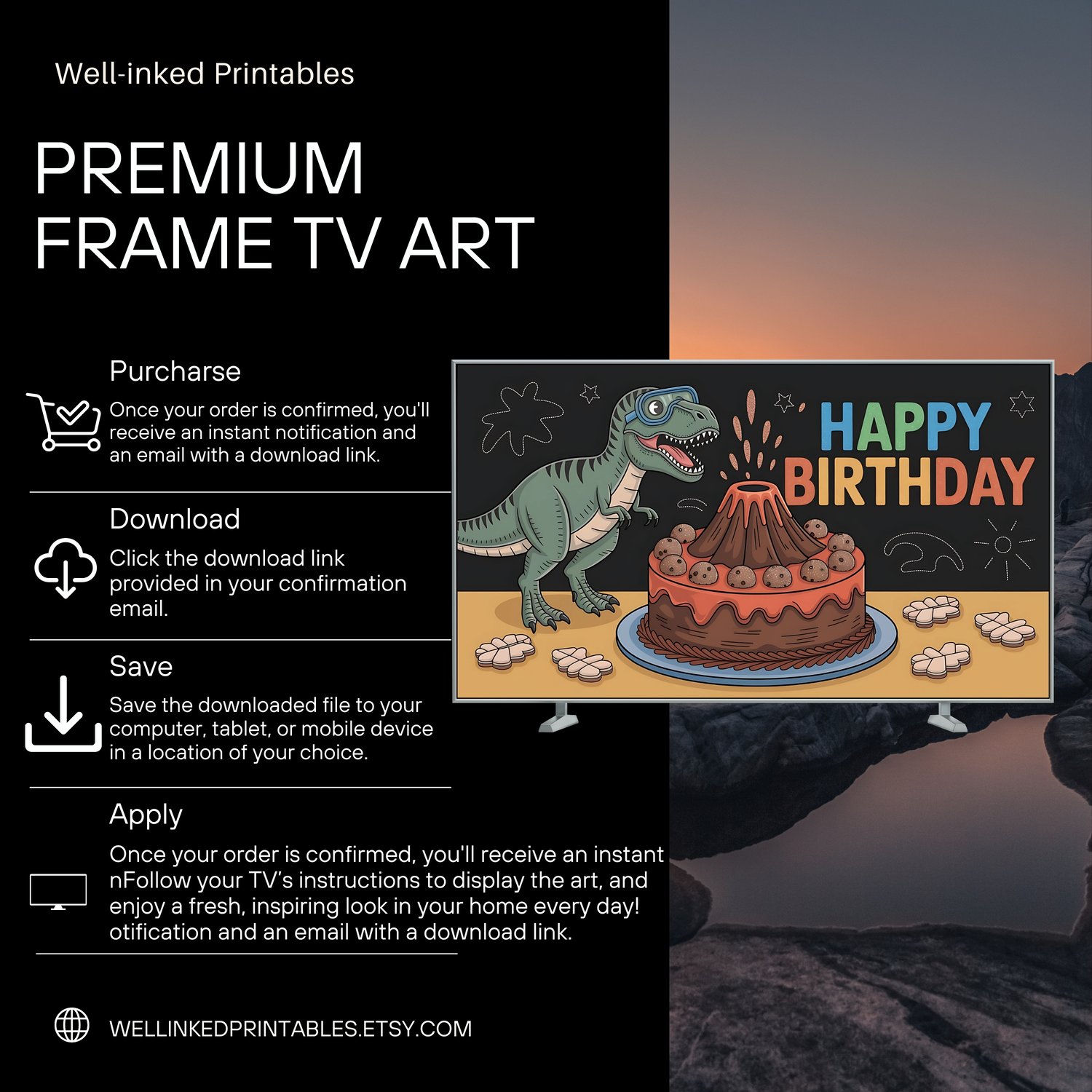 Dinosaur STEM Birthday Art - Volcano Cake & Lab Dino Frame TV Decor | Buy 1, Get 1 Free (2 Designs) | 4K Kids Party Digital Download