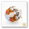 Becoming very popular lately are these 3-D peyote stitch balls, which come in all sizes and designs. One of a series of balls designed to match the Christmas Bells.