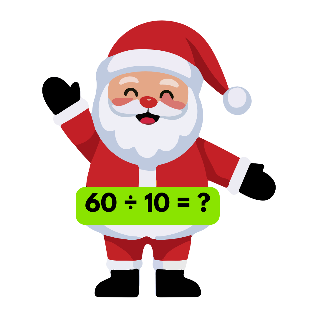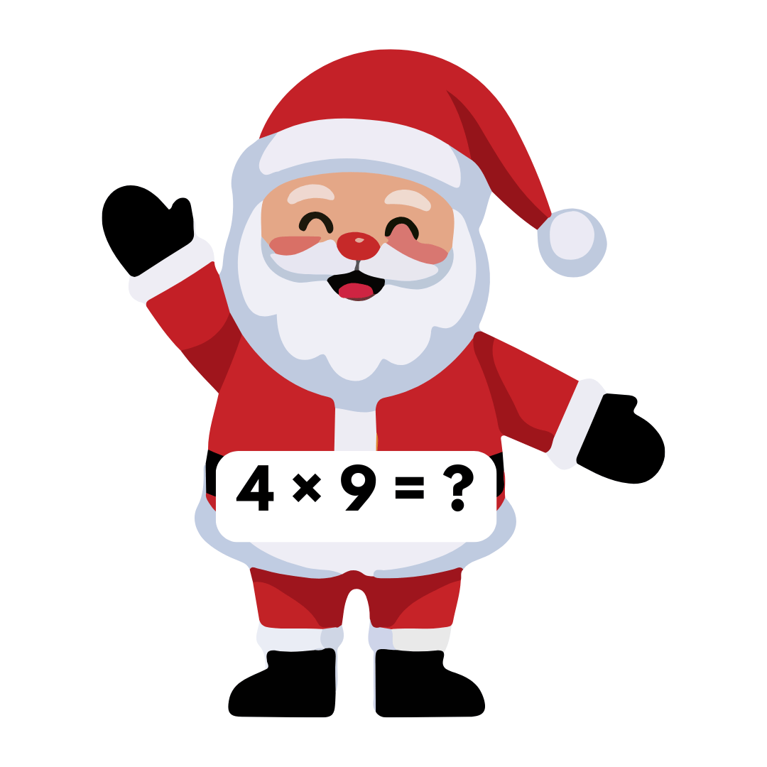 A set of santa cards with a mix of multiplication and division questions up to 12 x 12