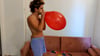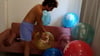In this video Kora burst all the small balloons int he room with a knife.