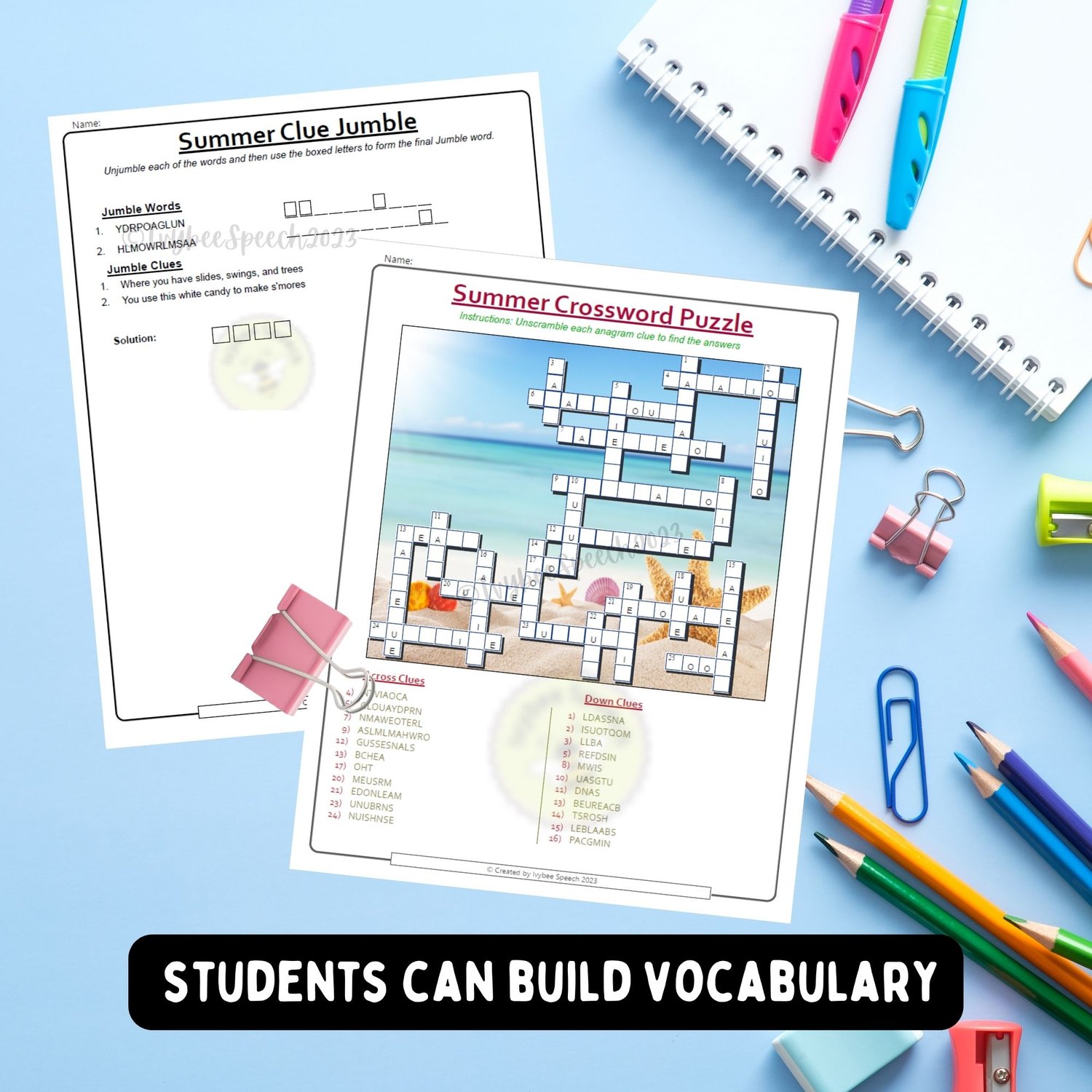 These puzzles are designed with elementary students in mind, featuring vocabulary and clues that are easy to understand. But don't be fooled - these puzzles provide a great brain workout, helping to build vocabulary, critical thinking skills, and problem-solving abilities. Have fun with these Summer themed interactive activities!